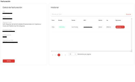 5. Ahora en el historial, tu factura aparecerá con el estado de facturada