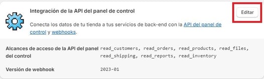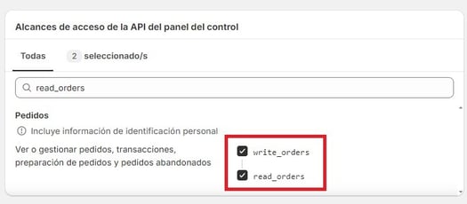 Actualiza los permisos de Shopify