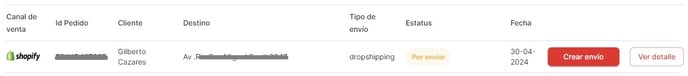 5. Una vez que hayas confirmado la información del pedido, puedes generar la guía de ese pedido en el botón Crear envío