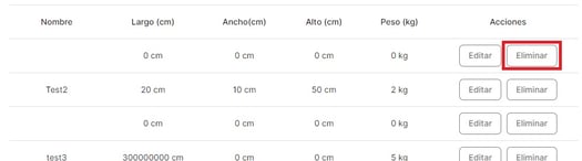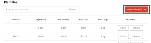 En esta sección podrás crear plantillas de tus paquetes, guardando tamaño y peso de cada uno para usarlo en futuras ocasiones.