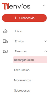 2. Dirígete al apartado de Finanzas y luego al sub menú Recargar Saldo.