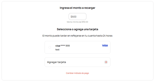 4. Elige el método de pago que utilizarás para realizar tu recarga